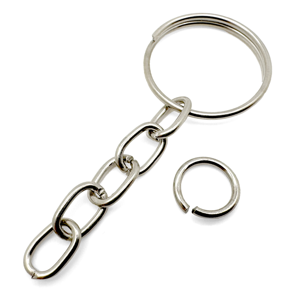 1000 Argolas para Chaveiro 20 mm com Corrente + Argola de Fixação 10 mm | Banho de Níquel de Alta Qualidade