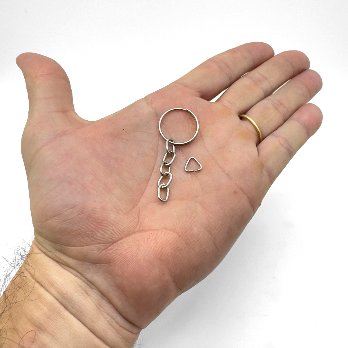 1000 Argolas para Chaveiro 20 mm com Corrente + Triângulo de Fixação 8 mm | Banho de Níquel de Alta Qualidade