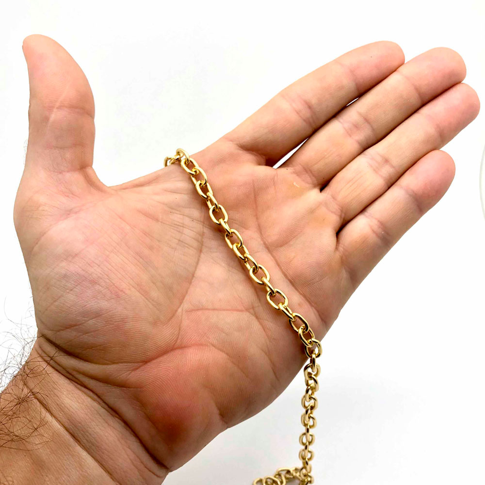 Para preservar a cor e o acabamento da corrente, evite contato com produtos químicos agressivos e exposição prolongada à umidade.