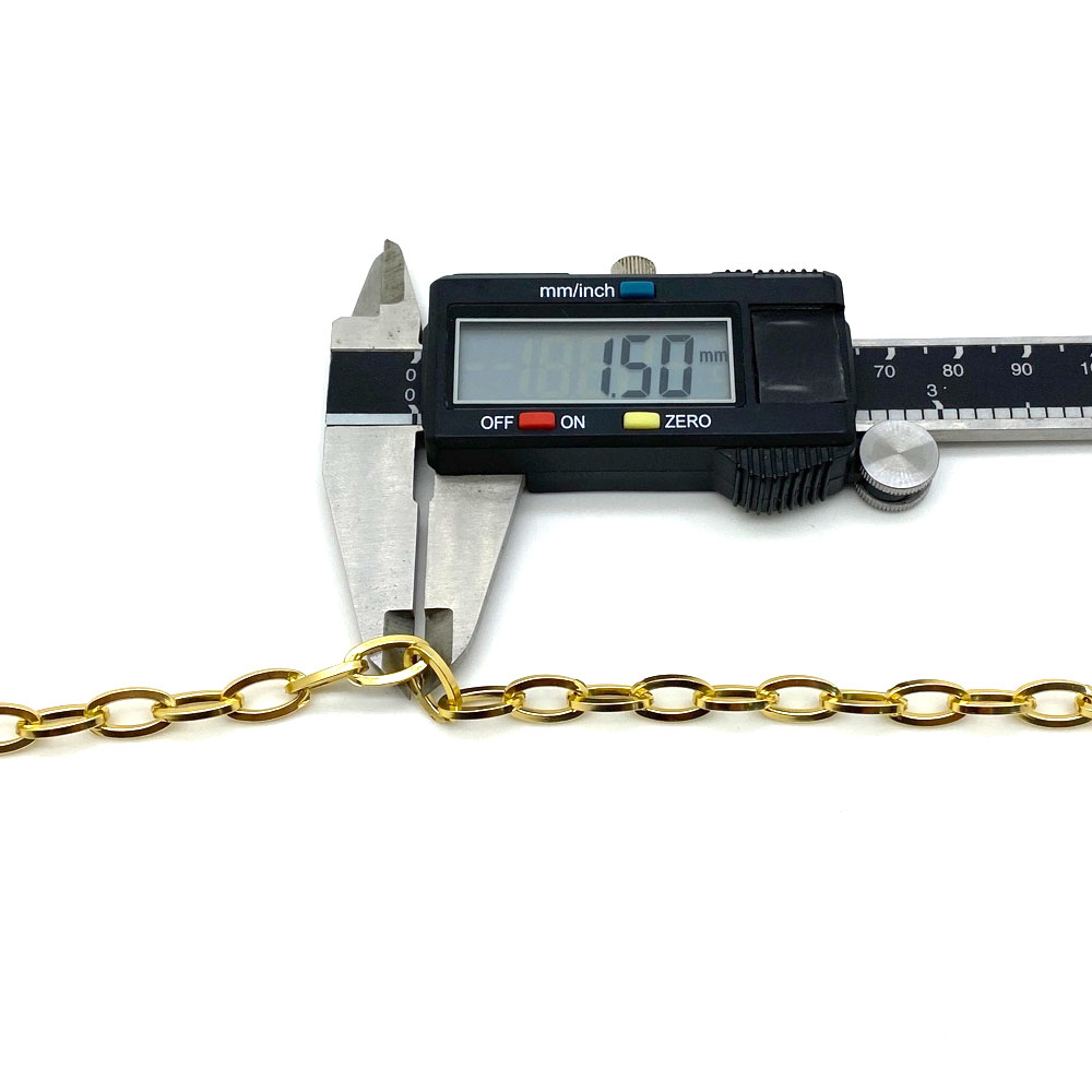 Com arame de 1.5mm de espessura e formato quadrado, essa corrente combina elegância e resistência, tornando-se ideal para detalhes em roupas, confecção de acessórios e aplicações artesanais. Seu acabamento anodizado protege contra oxidação e garante brilho uniforme e durabilidade.