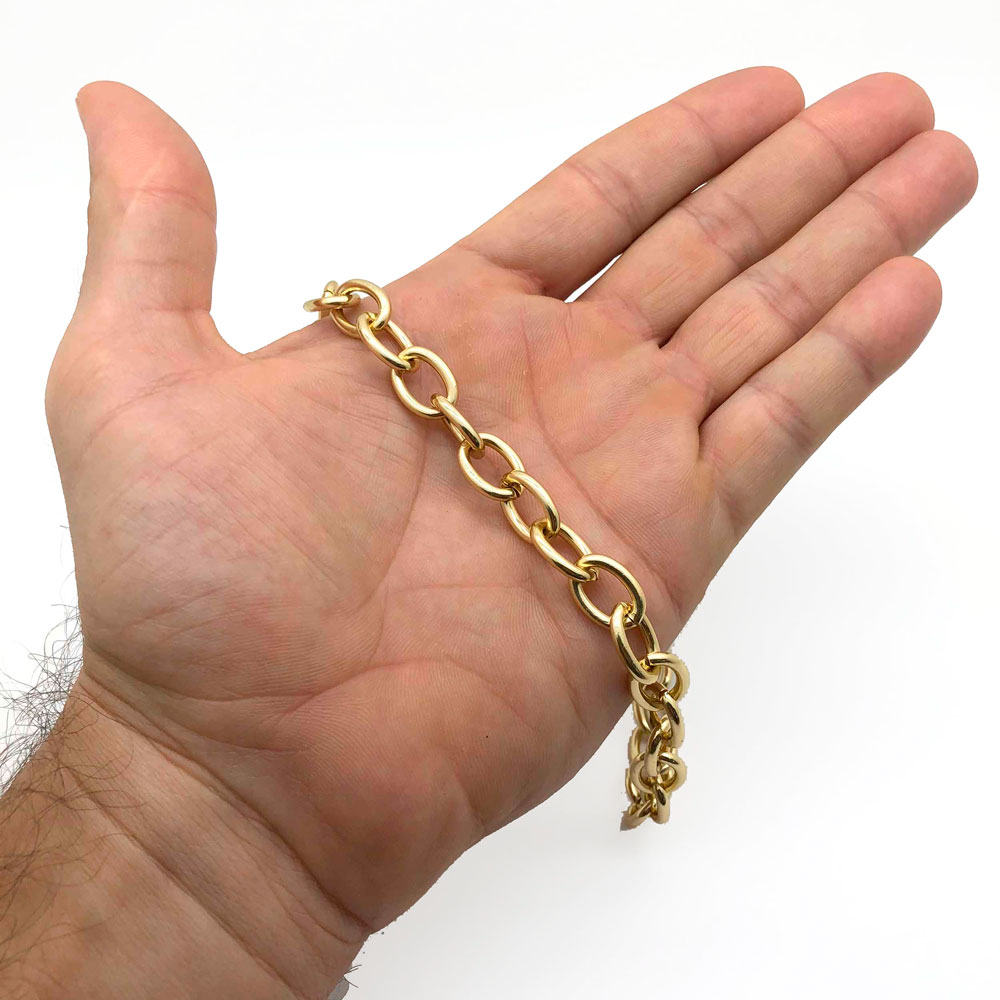 Com arame de 2.5mm de espessura, essa corrente é forte e resistente, sendo amplamente utilizada em alças de bolsas, cintos, calçados, colares, pulseiras e peças artesanais. Sua construção sólida garante alta durabilidade, enquanto o acabamento anodizado protege a cor e realça o brilho.