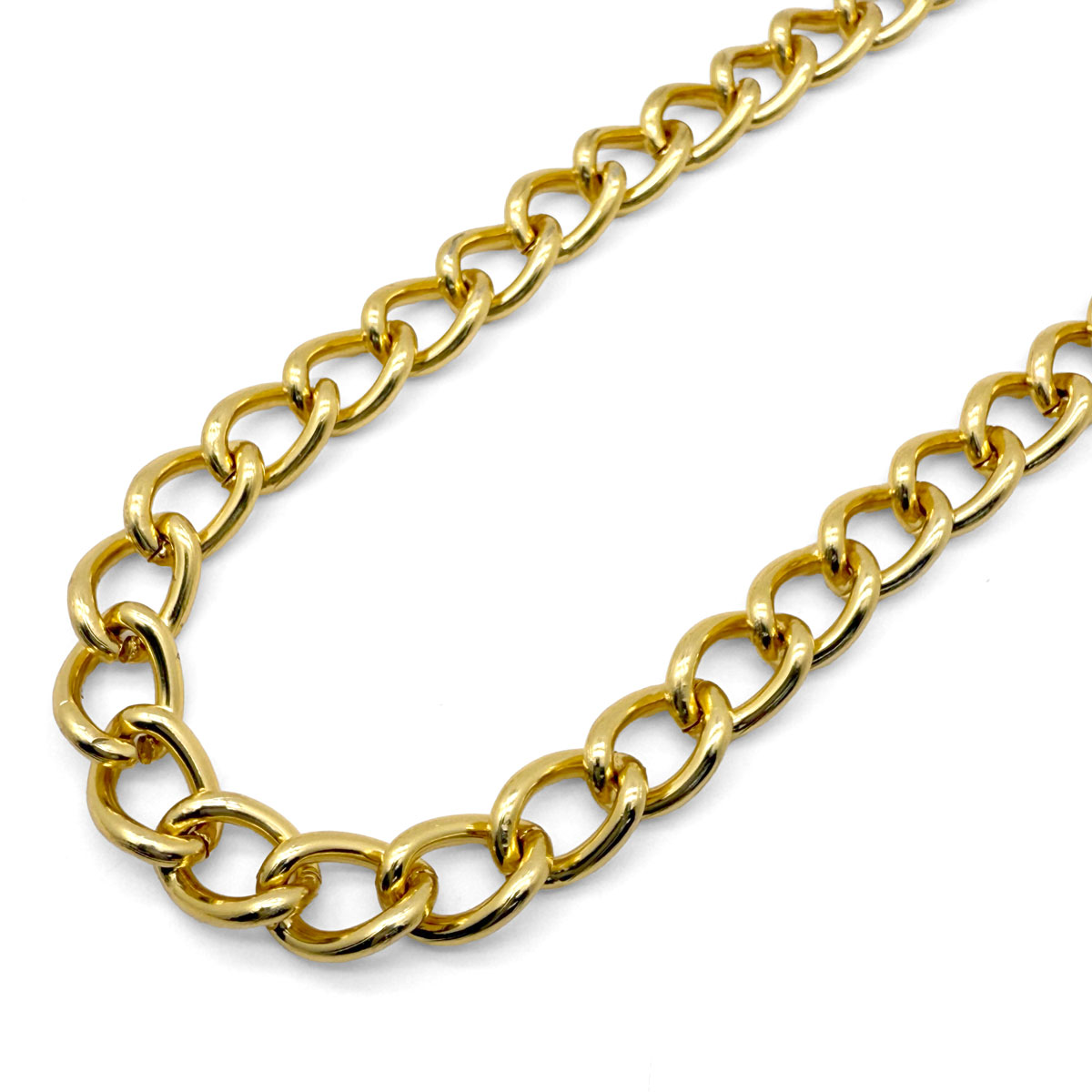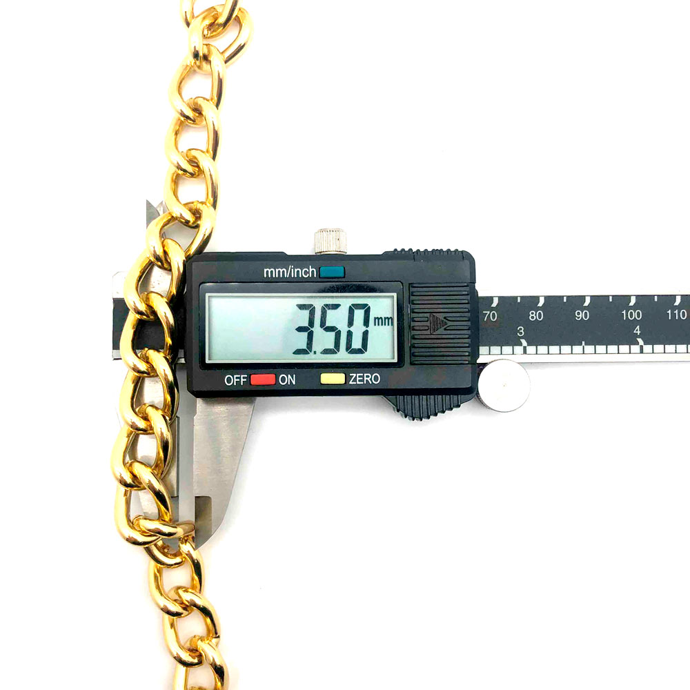 Com arame de 3.5mm de espessura, essa corrente é robusta e resistente, sendo amplamente utilizada em alças de bolsas, cintos, calçados, colares, pulseiras e peças artesanais. Sua estrutura sólida garante alta durabilidade, enquanto o acabamento anodizado proporciona brilho uniforme e proteção contra oxidação.