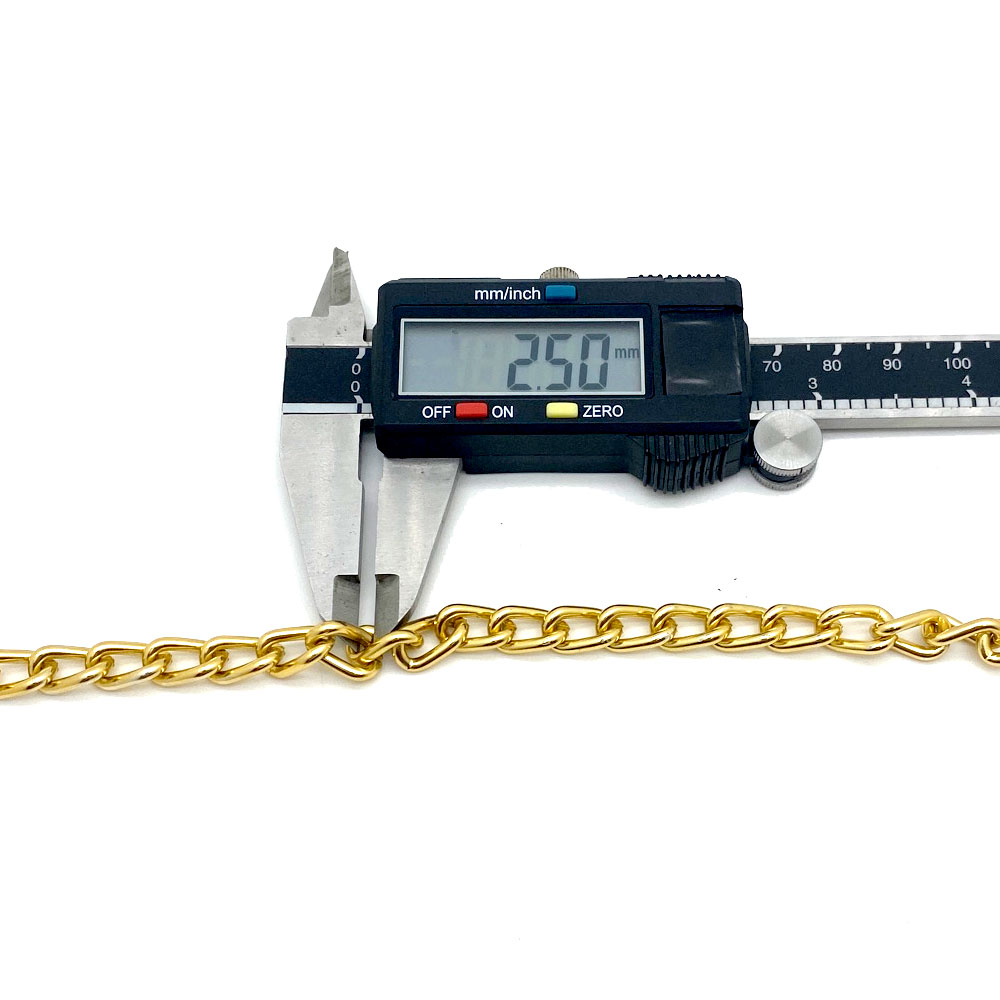 Com arame de 2.5mm de espessura, essa corrente é moderadamente resistente e leve, tornando-se perfeita para alças de bolsas, bijuterias, colares, pulseiras, cintos, calçados e peças artesanais. Seu acabamento anodizado protege a cor e garante um brilho uniforme, agregando sofisticação às suas criações.